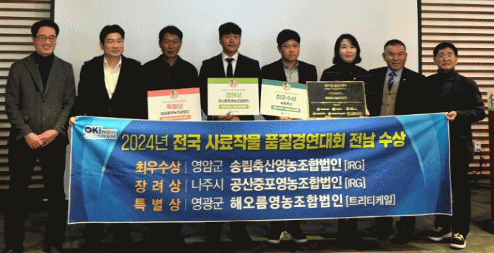 박도환 전남도 축산정책과장은 “전남은 전국 조사료 재배면적의 35%인 6만ha를 재배하는 국내 최대 고품질 조사료 생산 지역인만큼 이번 수상으로 전남에서 생산되는 국내산 조사료의 품질이 전국 최고임이 입증됐다”며 “축산물 품질 고급화를 위해 양질의 국내산 조사료를 최대한 이용해줄 것”을 당부했다.