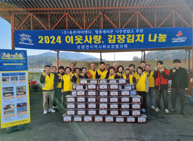 봉형균 문평면장은 “바쁜 와중에도 정성을 다해 김장 나눔에 참여해 주신 위원님들과 후원 업체들께 감사드린다”며 “앞으로도 유관단체 및 기관과 긴밀히 협력해 주민복지 증진을 위한 다양한 사업을 이어가겠다”고 밝혔다.