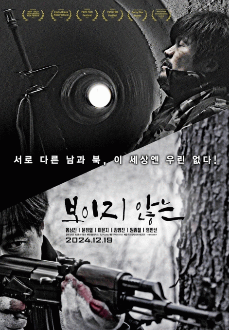 몸을 숨기기 적합한 땅굴 앞에서 숨을 고르고 있는 단 한 명의 남파무장공비와 날카로운 눈빛으로 누군가를 향해 총구를 겨누고 있는 북파공작원의 대비는 올겨울 극장에서 만날 수 있는 추격 액션 스릴러 '보이지 않는'을 향한 기대치를 최대로 높인다.