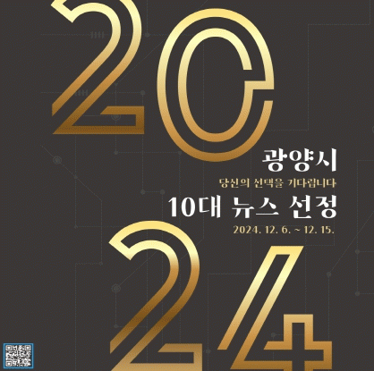 김재신 홍보소통실장은 “광양시는 향후 정책 수립과 각종 시책 추진에 시민의 목소리를 반영하기 위해 매년 10대 뉴스를 선정하고 있다. 광양시 시정에 관심이 있는 분이라면 모두 참여 가능하니 2024 광양시 올해의 10대 뉴스 설문조사에 많은 관심과 참여를 부탁드린다”고 말했다.
