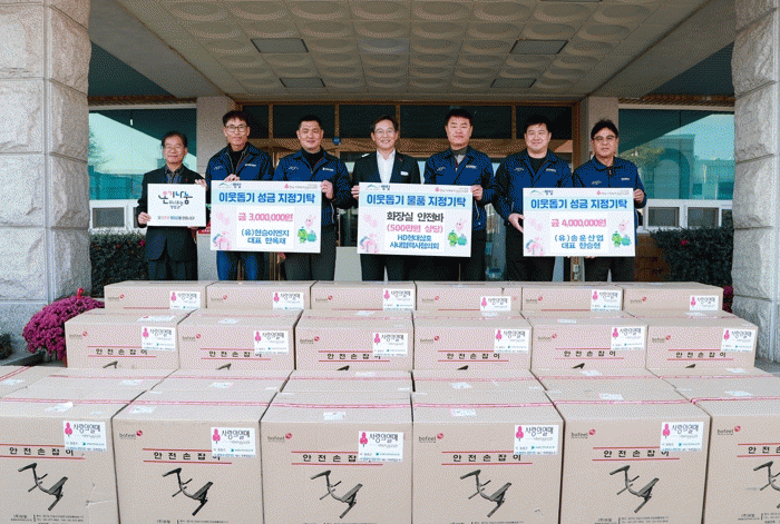 HD현대삼호사내협력사협의회는 500만원 상당의 화장실 안전바 25세트를, (유)현승이엔지는 300만원을, (유)송운사업은 400만원을, HD현대삼호반장협의회는 300만원 상당의 등유를 각각 기부했다.