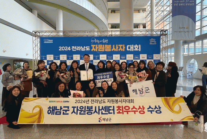 해남군은 4일 전남도청 김대중 강당에서 열린 2024 자원봉사자 대회에서 최우수 자원봉사센터로 선정되어 최우수상을 수상했다.