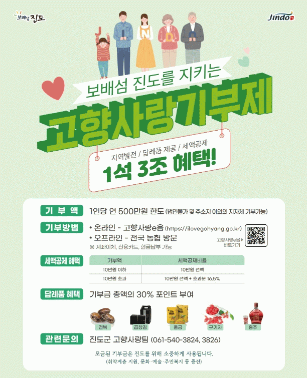 진도군 관계자는 “연말을 맞아 따뜻한 마음을 나누고 고향사랑기부제의 활성화를 위해 이벤트를 진행했다”라고 전했다.