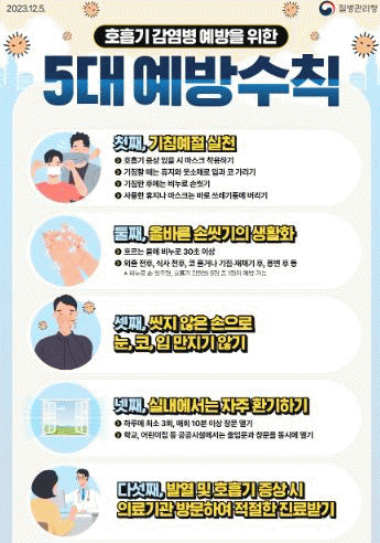 이를 예방하기 위해서는 ▲올바른 손씻기 ▲기침예절 준수하기 ▲씻지 않은 손으로 눈, 코, 입 만지지 않기 ▲증상 있는 기간 동안 직장, 학교, 공공장소 방문 제한하고 집에서 휴식하기 같은 예방수칙 준수가 필요하다.