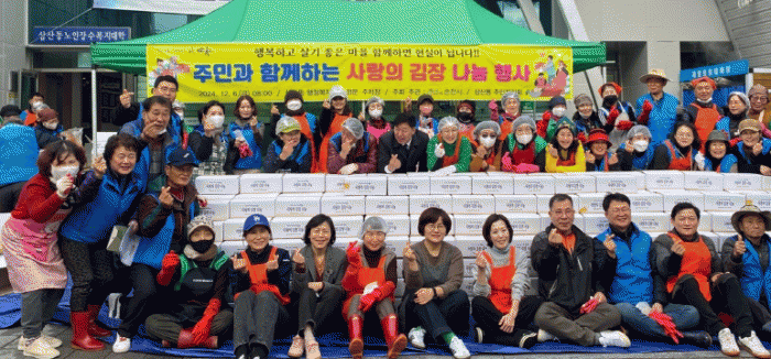 최홍미 삼산동장은 “협력해 주신 직능단체 회원들께 감사드린다”며 “이번 김장 나눔 행사를 통해 나눔 문화가 확산되고 어려운 이웃들이 추운 겨울에도 지역사회의 지속적인 관심과 손길을 느낄 수 있도록 적극적인 행정을 펼치겠다”고 밝혔다.