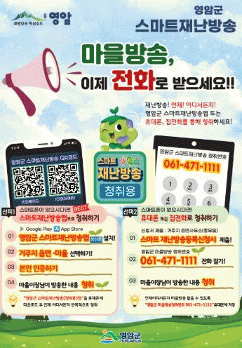 스마트폰 앱을 활용한 이 시스템 구축으로, 앞으로 영암군민 누구나 어디서나 마을방송과 재난방송을 들을 수 있게 됐다.