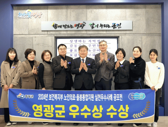 이번 공모전은'노인 의료·돌봄 통합지원사업'을 추진 중인 지자체 및 민간기관을 대상으로 실시됐으며 영광군은 ‘내 집에서 가능한 오래! 통합돌봄으로 지켜줄게요’라는 주제로 ‘우수상’을 수상하는 쾌거를 이뤄냈다.