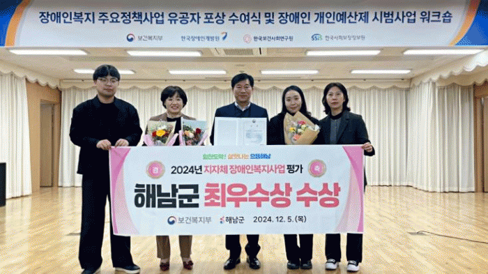 군 관계자는“장애인 눈높이에 맞는 정책을 수립하고 적극 행정을 펼친 노력이 우수한 평가를 받은 것으로 풀이된다”며“앞으로도 장애인 복지 증진과 사회 소외계층의 지원사업 발굴에 힘써 장애인과 군민 모두가 행복한 해남군을 만들기 위해 노력하겠다”고 전했다.