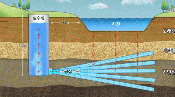 강변여과수는 하천 주변의 모래층을 자연 여과막으로 활용해 오염물질을 제거한 뒤 생활용수로 사용하는 방식이다.