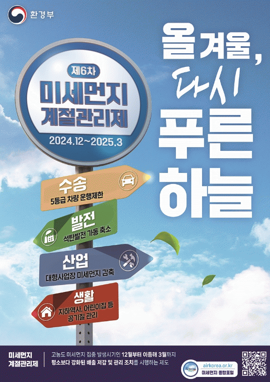 ‘미세먼지 계절관리제’는 고농도 미세먼지 발생 빈도가 높은 동절기에 미세먼지 배출 저감 및 관리 조치를 보다 강화하는 집중 관리 대책이다.