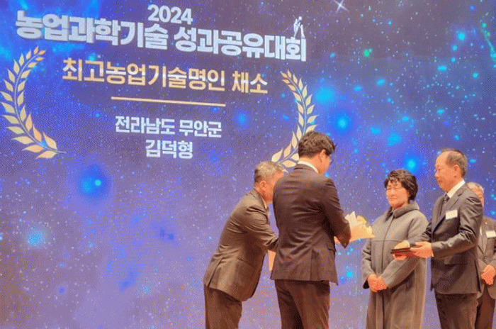 무안군 김덕형 농업인은 2012년 전국 최초 양파 기계정식 단지 조성을 시작으로 양파 재배 전과정 기계화 보급에 선도적인 역할을 하고, 2018년 스테비아 액비를 이용한 기능성 양파 재배방법 특허를 획득하여 양파 재배의 차별화를 통한 고품질 양파생산에 기여한 점을 높이 평가받았다.