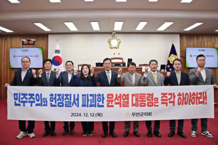 무안군의회는 비상계엄령은 전시?사변 및 이에 준하는 국가적 비상사태의 경우에 불가피하게 발동할 수 있으나 이번 윤석열 대통령의 비상계엄령 선포는 헌법이 정한 절차와 요건을 위반하고 심지어 계엄군을 동원해 국회를 무력화하려는 위헌적 친위 쿠데타를 자행했다고 강도 높게 비판했다.