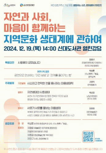 또한, 고영직 문화평론가는 기조발제인 ‘사소하고 연약한 것을 응시하는 마음생태학’을 통해 문화와 생태적 가치의 상호작용을 강조하며 지역문화 활성화의 중요성을 논의할 예정이다.