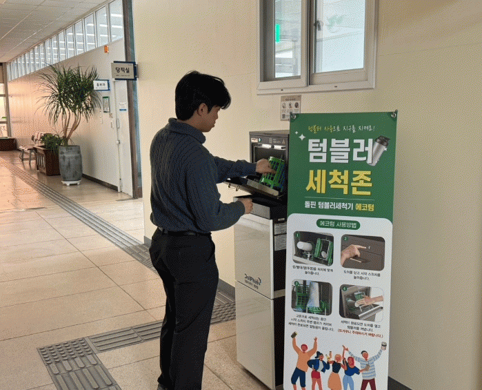 시는 텀블러 세척기 설치로 직원들이 손쉽게 텀블러를 세척할 수 있게 됨에 따라 다회용 컵 사용이 더욱 활성화될 것으로 기대하고 있다.
