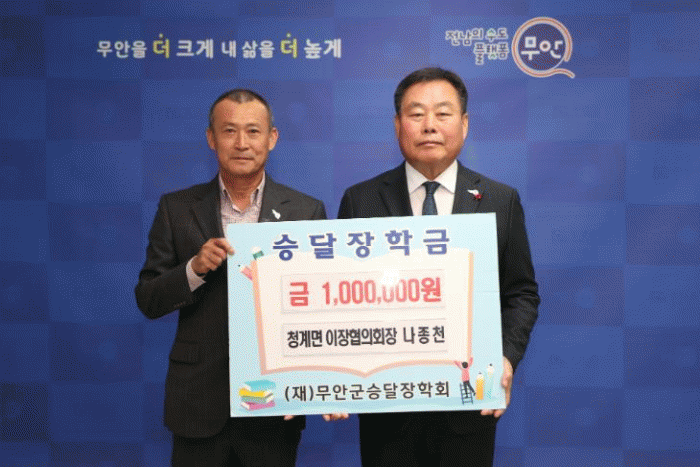 나종천 청계면 이장협의회장은 “지역인재 육성을 위해 조금이나마 도움이 되고자 장학금을 기탁하게 되었다”며 “지역의 인재들이 바르게 성장하고 무안군의 주역으로 자라는 데 보탬이 되면 좋겠다”라고 소감을 밝혔다.
