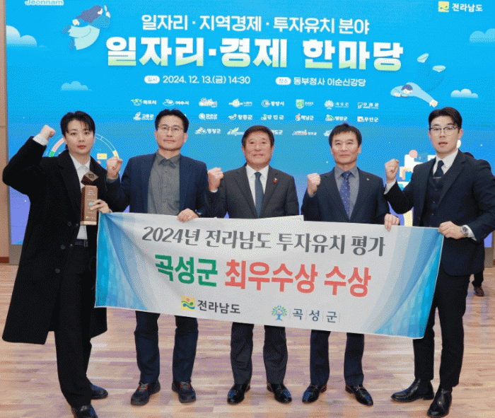 조상래 곡성군수는 “지방소멸 위기의 어려운 여건 속에서 군민과 공직자들의 관심과 노력으로 우리 군 최초로 투자유치 부문에서 최우수상이라는 값진 결과를 얻게 됐다. 앞으로 분양 예정인 운곡농공단지에도 전략적 투자유치로 양질의 기업을 유치하고, 지속적인 소통을 통해 기업투자 환경이 선순환될 수 있도록 적극 노력하겠다.”라고 전했다.