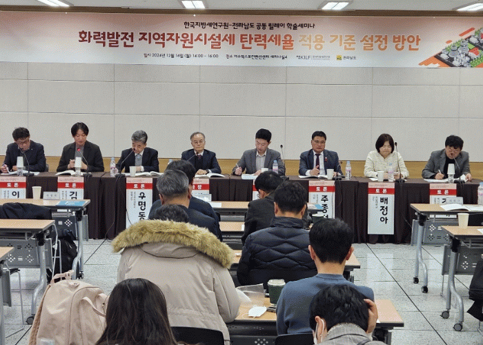 이영춘 전남도 세정과장은 “발전시설 주변 지역의 외부불경제 해소를 위한 탄력세율 도입이 필요하지만, 유독 이에 대한 탄력세율 적용은 배제되고 있다”며 “사용연료별 차이를 고려해 세율 조정안을 제시한 이번 학술세미나 결과를 토대로 중앙정부에 제도 개선 건의를 지속적으로 해나가겠다”고 강조했다.