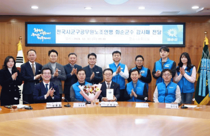 구복규 화순군수는 “이번 감사패는 화순군 공직자 모두의 노력과 협력에 대한 감사”라며, “앞으로도 노사 화합을 통해 공무원들이 자부심을 갖고 일할 수 있는 환경을 조성해 군민을 위한 행정서비스의 질을 더욱 높여 가겠다.”고 말했다.