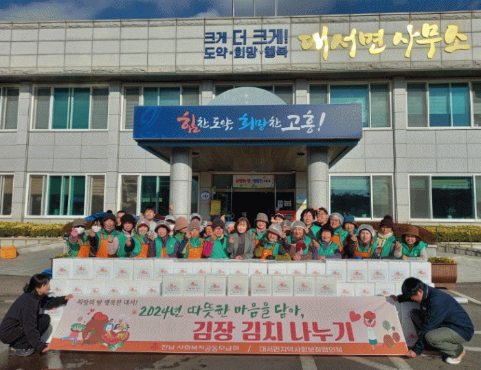 김장김치 배부 대상은 대서면 내 마을경로당 33곳과 취약계층 200가구로, 김치가 꼭 필요한 이웃들에게 새마을부녀회원과 지역사회보장협의체 위원들이 직접 전달하며 안부를 확인하고 이웃의 정을 함께 나누었다.