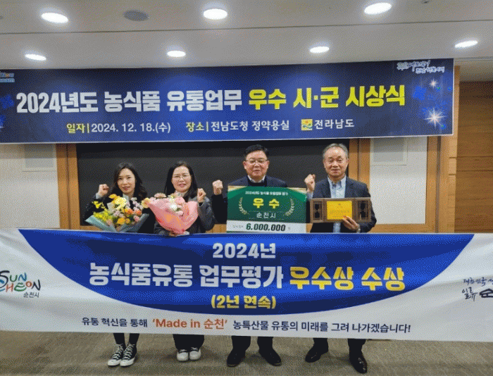 시 관계자는 “이번 농식품유통 업무평가 우수상 선정은 각 분야별로 적극적으로 동참하고 정책에 참여해주신 농업인과 관계자 덕분이다”며, “앞으로도 ‘Made in 순천’ 농특산물 유통을 통해 농가 소득을 창출할 수 있는 다양한 방안을 모색하고 시책을 추진하는 데 최선을 다하겠다”고 말했다.