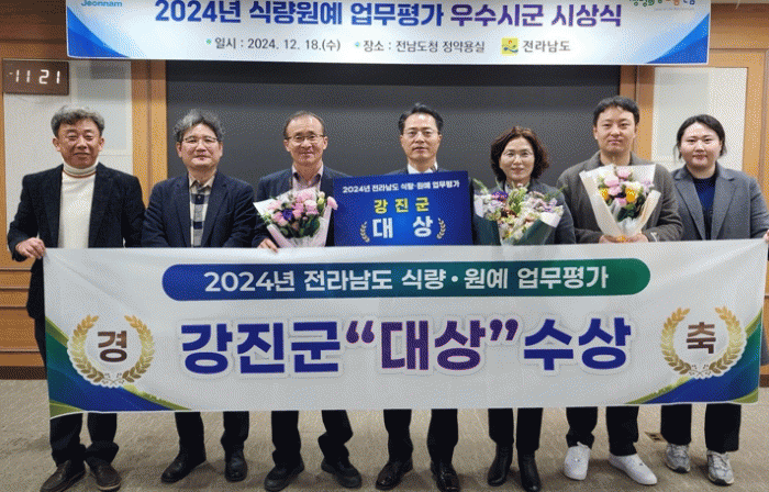 식량원예 평가에서는 강진군의 식량정책, 원예산업 분야 등 3개 분야 18개 항목을 평가해 올해 ‘대상’을 수상했다.