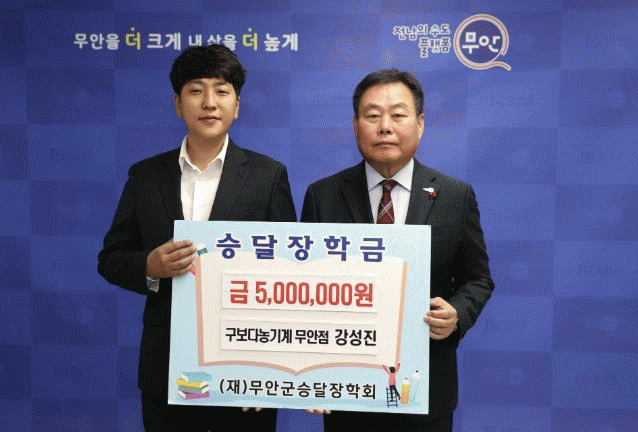 김산 군수는 “지역인재 육성을 위해 꾸준히 기탁해주고 계시는 구보다농기계 강성진 대표님께 감사드린다”며 “기탁해주신 장학금은 지역사회 발전 동력인 우수 인재 발굴 및 육성을 위해 뜻깊게 사용하겠다”고 감사의 뜻을 전달했다.