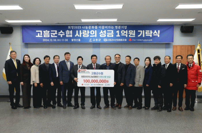 이홍재 조합장은 “지역사회와 함께 성장해 온 고흥군수협이 어려운 이웃들에게 작은 보탬이 되기를 바라는 마음으로 성금을 준비했다”며 “앞으로도 지역사회의 든든한 동반자로서 다양한 사회공헌 활동을 지속적으로 펼쳐나가겠다”고 전했다.