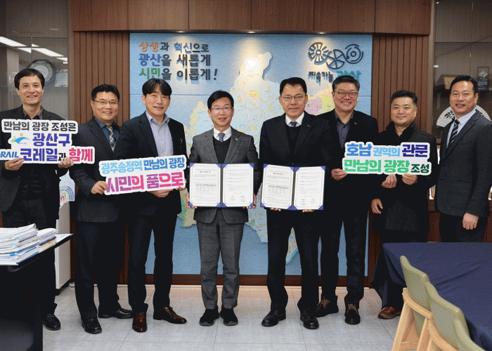 광주 광산구는 19일 구청에서 한국철도공사(코레일) 광주본부와 ‘광주송정역 만남의 광장 조성 사업 추진을 위한 업무협약’을 체결했다고 밝혔다.