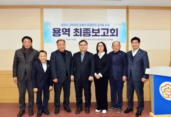 안영헌 대표의원은 “이번 용역 최종보고회를 통해 광양시 교육재정 운영이 보다 체계적이고 실효성 있게 이뤄질 수 있는 토대를 마련했다”라며 “연구결과를 집행기관과 공유하고, 향후 정책 수립에 적극 반영해 우리 지역의 교육 환경을 한 단계 발전시키는 데 힘쓰겠다”라고 밝혔다.
