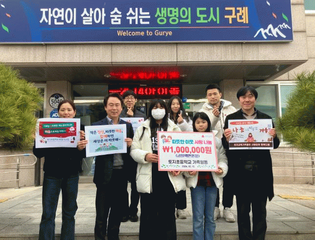 손기원 토지면장은 “학생들과 토지초 교육 가족이 보내준 따뜻한 나눔에 깊이 감사드린다”며 “이 소중한 기부금은 지역사회의 어려운 이웃을 위해 의미 있게 사용하겠다”고 말했다.