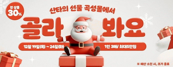 곡성몰 관계자는 “이번 크리스마스 기획전을 통해 따뜻한 연말 보내시고 내년에도 곡성몰과 함께해주시길 바란다”라고 밝혔다.