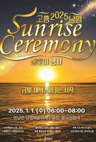 또한, 고흥군 전속예술단의 신명 나는 대북 공연과 2025 새해를 주제로 한 1,500대 규모의 드론쇼와 불꽃쇼가 펼쳐져 잊지 못할 새벽의 감동을 선사할 예정이다.