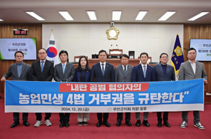 군의회는 성명서를 통해 “농민은 기후 재난과 생산비 폭등, 쌀값 폭락으로 소상공인은 얼어붙은 경기와 계엄 후폭풍으로 벼랑 끝에 서 있다”며 “내란 공범 혐의자에 의해 행해진 농업?민생 4법에 대한 거부권 행사는 묵과할 수 없는 또 한 번의 폭거”라고 비판했다.