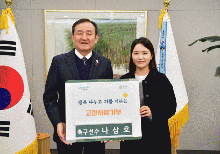 군에 따르면, 수북면 출신인 나상호 선수는 지난해 고향사랑기부금 1호 기부자로, 올해에도 군 지역발전을 위해 흔쾌히 최고액을 기탁했다.