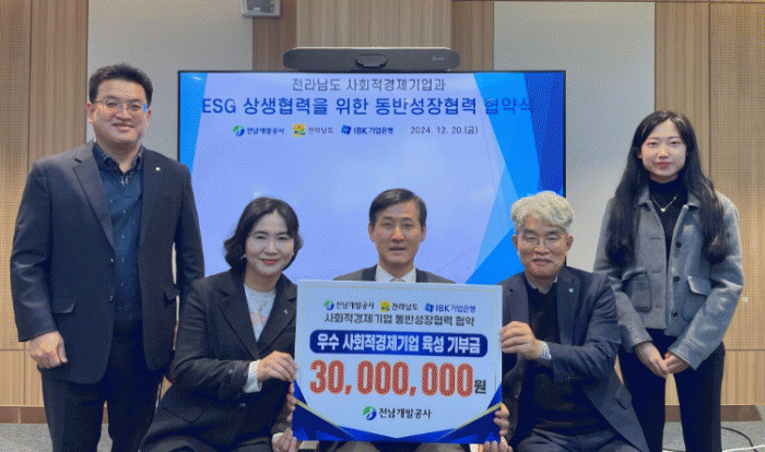IBK기업은행은 지난 2023년 33개 사, 2024년 35개 사에 저리 대출을 지원했다. 전남개발공사는 매년 3천만 원씩 총 6천만 원을 전남도로 기부하고, 도는 경영 실적이 우수한 사회적경제기업 등 2023년 16개 사, 2024년 14개 사를 선발해 판로 확대, 홍보·마케팅, 신제품 개발 등 질적 성장을 지원했다.