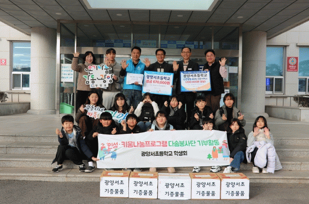 권회상 광양읍장은 “서초등학교 학생회의 따뜻한 마음이 추운 겨울 취약계층에 많은 도움이 될 것 같다. 지역사회 나눔을 실천하고 있는 단체와 학교가 있어 든든하다”며 감사를 전했다. 이어 “지역단체·학교에 더욱 관심을 두고, 이들과의 상호 협력을 통해 행복1번지 광양읍을 만들어가겠다”고 말했다.