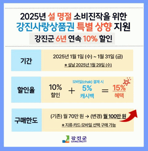 2025년에도 강진사랑상품권 발행액을 확대해 지역 경제 활성화에 기여할 계획이다.