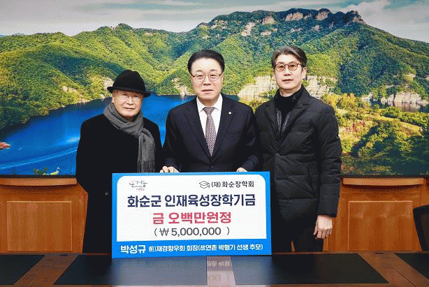 박 전 회장은 "독립운동가셨던 부친께서 화순 교육 발전을 위해 평생을 바치셨던 것처럼, 우리 또한 고향 발전에 작은 보탬이 되고 싶다"라며 기탁 취지를 밝혔다.
