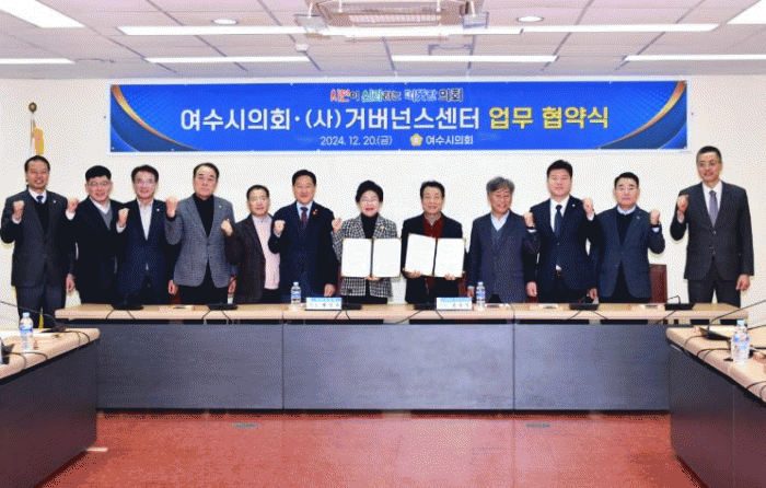 이날 여수시의회와 거버넌스센터는 업무 협약 체결을 통해 지역 거버넌스와 지방 정치 발전을 위한 공동 연구 수행, 역량 강화 교육, 분권 자치 강화 캠페인, 지역 혁신 우수 사례 발굴 전파 등 지역 거버넌스 활성화를 위한 협력 기반을 마련했다.