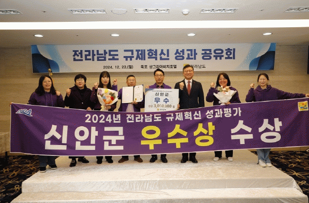 신안군은 불합리한 중앙규제 개선을 위해 8건의 중점 개선 과제를 제출했으며, 이중 「수산업협동조합법 시행령」 개정 등 2건이 수용(일부수용 포함)되어 개정절차가 진행 중이다.