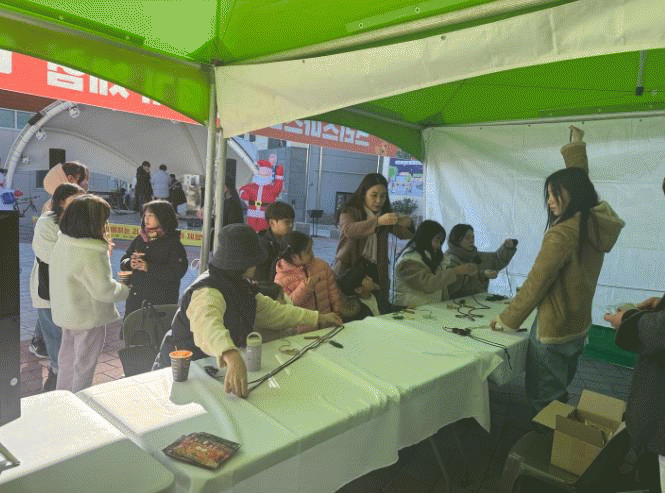 이날 행사는 ▲마음나래의 화순 원도심 프로젝트 홍보 부스 ▲메이커스길드의 크리스마스 리스 만들기 체험 행사 부스 ▲청년새마을연대가 운영하는 키링 체험부스 및 먹거리 체험 부스 ▲아트포의 공연까지 우리 군 청년공동체의 열정에 빛난 무료 재능 나눔으로 청춘신작로 거리가 활력으로 가득 찼다.