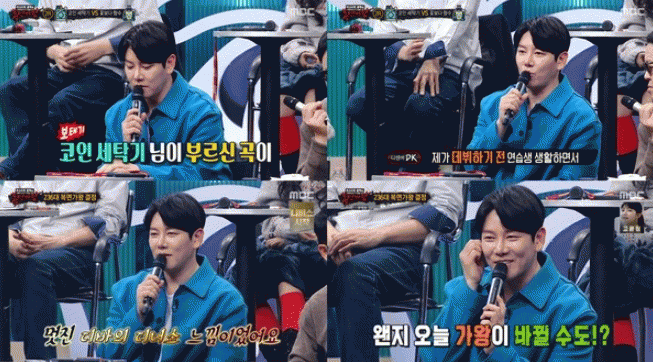 특히 DK는 출연자 '코인 세탁기' 무대 후 "코인 세탁기 님이 부르신 곡이 제가 데뷔하기 전 연습생 생활하면서 오디션에서 자주 불렀던 곡"이라며 "저랑 비슷한 연배의 아이돌"이라고 추리했다.