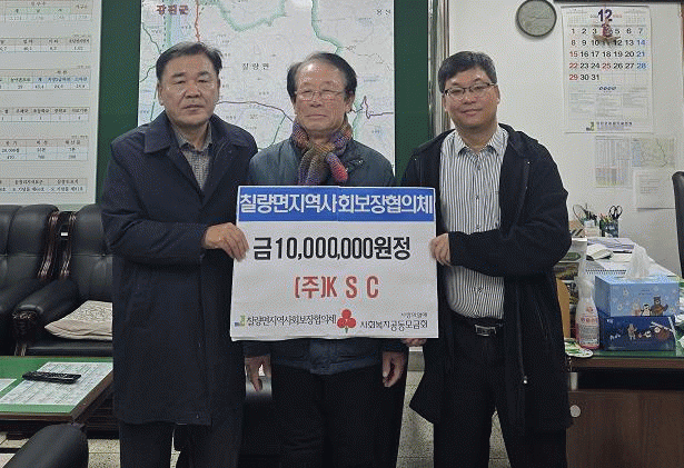 주식회사 KSC의 김상희 대표가 최근 칠량면사무소에서 칠량면 지역사회보장협의체를 통해 이웃돕기 성금 1,000만 원을 기탁했다.