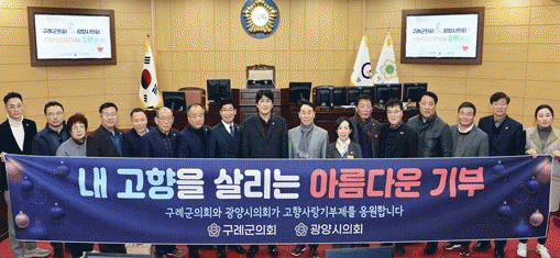 구례군의회 장길선 의장은“고향사랑기부제 상호 기부에 동참해 주신 의원, 직원분들께 감사의 마음을 전한다”며,“이번 기부가 의회 간 상호 교류의 장을 마련하고, 기부 문화 확산에 도움이 되기를 바란다”고 말했다.