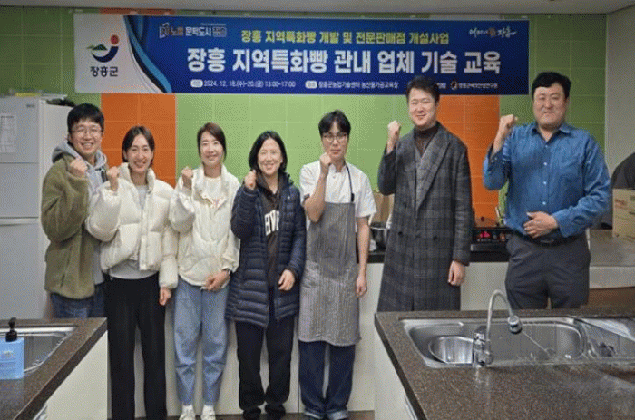 이날 교육에는 장흥 관내 업체 6곳을 대상으로 (재)장흥군버섯산업연구원에서 개발한 지역특화 빵 6종의 장흥 원목 표고를 품은 제과 및 제빵 기술을 실시했다.