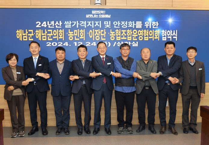 명현관 해남군수는“전국적인 쌀값 하락으로 전국 최대 규모 벼 생산지역인 해남 농업인들의 소득 저하가 우려되고 있다”며“앞으로도 기후변화등 다양한 위기에 대처하기 위해 지역단체 등과 적극적 소통을 통해 장기적이며 실천 가능한 방법을 모색해 나가겠다”고 밝혔다.