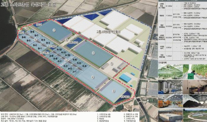 이 육성지구는 청년 농업인의 유입 확대와 농업법인 중심으로 스마트팜 및 가공·유통시설 등 전후방산업을 집적화하여 지역단위 스마트팜 확산의 거점을 마련하는 것으로, 전남 고흥 스마트팜 혁신밸리(33ha)와 농식품부로부터 이미 선정된 대규모 스마트팜 창업단지(20ha), 스마트원예단지(11ha)가 포함된다.