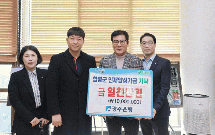 함평군 관계자는 “24일 광주은행에서 1천만 원을 인재양성기금에 기탁했다”고 밝혔다.