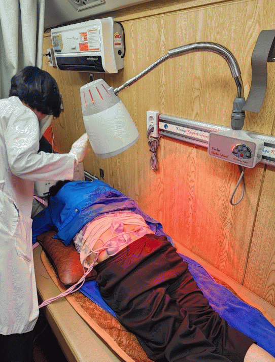 특히, 병원 방문이 어려운 어르신과 거동이 불편한 주민들에게 간섭파 전기치료와 적외선 열치료 등 맞춤형 통증 관리가 포함된 전문 물리치료 서비스를 하며 높은 만족도를 기록, 주민들에게 큰 호응을 얻었다.