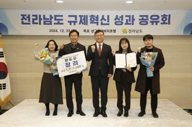 완도군은 불합리한 중앙 규제 개선을 위해 중앙부처 건의 과제 4건, 적극 행정을 통한 규제 해소 사례 발굴 7건, 규제 신문고를 통한 규제 애로 건의 5건 등을 중앙부처에 제출하며 규제 개선에 힘썼다.